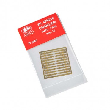 Accastillage modélisme maquette de bateau : Chandelier plat en laiton Amati B4949.10 Hauteur 13 mm - Hauteur utile 10 mm - 2 filières de diamètre 1 mm - 20 pièces.