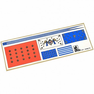 Modélisme maquette de bateau : Ensemble de pavillons et décorations du galion Elisabeth Planche autocollante en papier texturé de qualité 296 x 215 mm - 2 pavillons 80 x 40 mm - 4 décorations latérales grandes/petites : 214 x 53 mm / 150 x 34 mm - 1 décoration de poupe 27 x 21 mm.