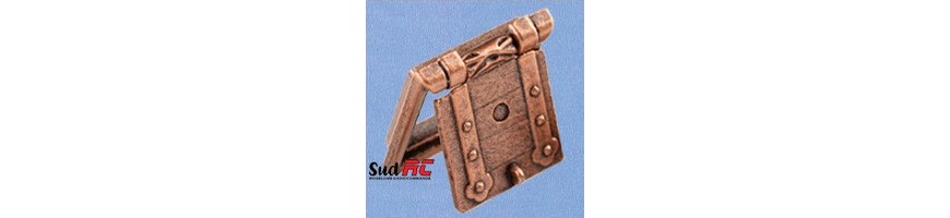 Accastillage accessoire maquette de bateau : Ensemble portes de descente en cale en métal bruni Amati B4396. Dimensions 20 x 20 mm - Hauteur 17 mm - Portes mobiles - A assembler - 1 ensemble.