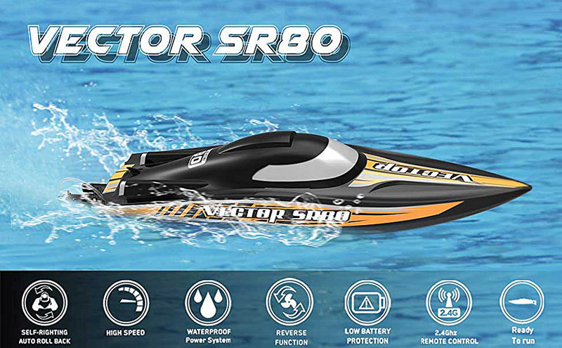 En version RTR, le Vector SR80 est livré 100% prêt à naviguer, une batterie 4S et un chargeur LiPo sont inclus. Le système radio 2.4GHz permet une navigation sans aucune interférence.