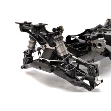 De nombreuses pièces usinées du châssis sont en Aluminium anodisé sont de haute qualité. La suspension est entièrement réglable. L'assemblage de suspension C-Hub avant nouvellement conçu permet un pilotage plus doux. Les amortisseurs de gros diamètre 17 mm réglables permettent d'absorber tous les obstacles présents sur la trajectoire de l'Hyper SSe.