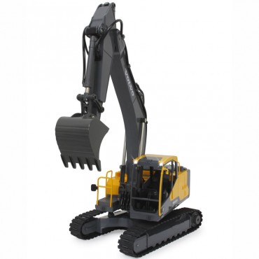 Fabriqué à l'échelle 1/16 - longueur 66 cm bras déployé - l'excavatrice Volvo EC160E Jamara possède l'ensemble des fonctions tout comme le vrai modèle, la cabine bénéficie de détails complets, la pelle intègre un module sons, des phares à LED, et le godet est en métal.